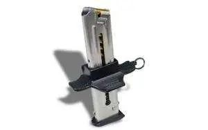 Maglula's X10/V10 set loaders is ideal for loading .22LR cal. single-stack narrow mags with a projecting side-button.