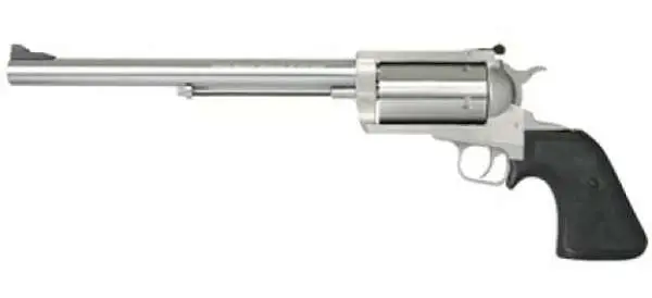 MRI's Big Frame Revolver is the biggest, finest revolver on the market today. Entirely manufactured in the US, it is designed as a magnum from the ground up. The BFR is all stainless and has a cut rifled barrel that delivers unmatched accuracy with lead or jacketed bullets. The BFR is the most powerful production single action gun made. This model has a long cylinder, brushed stainless steel finish with black rubber grips, and comes with a Weaver-style scope mount.
