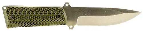 Magnum Research's 1911 fixed blade knife has a stainless steel blade made from 420C stainless steel with a brushed finish and features the Magnum Research Desert Eagle logo. The handles are G10 grips in two-tone gray and green and are interchangable with a 1911 pistol grip. It includes a sheath.