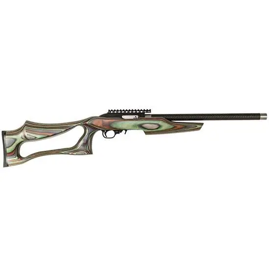 Magnum's MLR (Magnum Lite Rifle) is designed and entirely manufactured in the United States. At the heart of the rifle is its one-piece, forged 6061-T6 receiver that utilizes an integral Picatinny rail and has a hard coat anodized finish for durability and wear. It is equipped with the patented graphite bull barrel which features uni-directional graphite fibers and is full-floating with an 11 degree muzzle crown for maximum accuracy. This SwitchBolt 22LR model has a 17" barrel, ambidextrous Evolution laminate forest camo stock, and comes with one 10-round magazine.