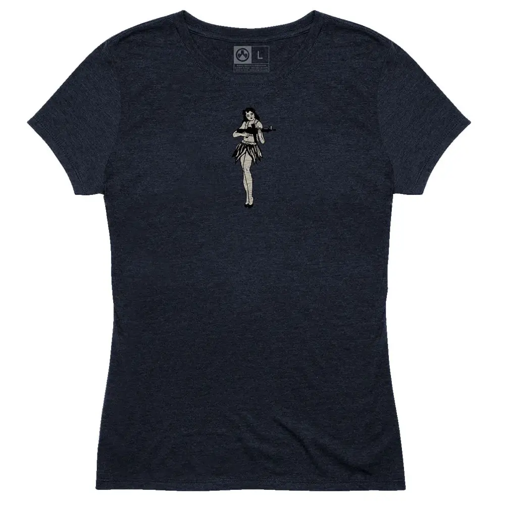 Made in the USA, the Magpul Hulua Womens t-shirt is made of 25% cotton/50% polyester/25% rayon with a v-neck and set-in sleeves. It features a tag-less interior neck label, shoulder to shoulder neck tape, and double-needle stitching.
