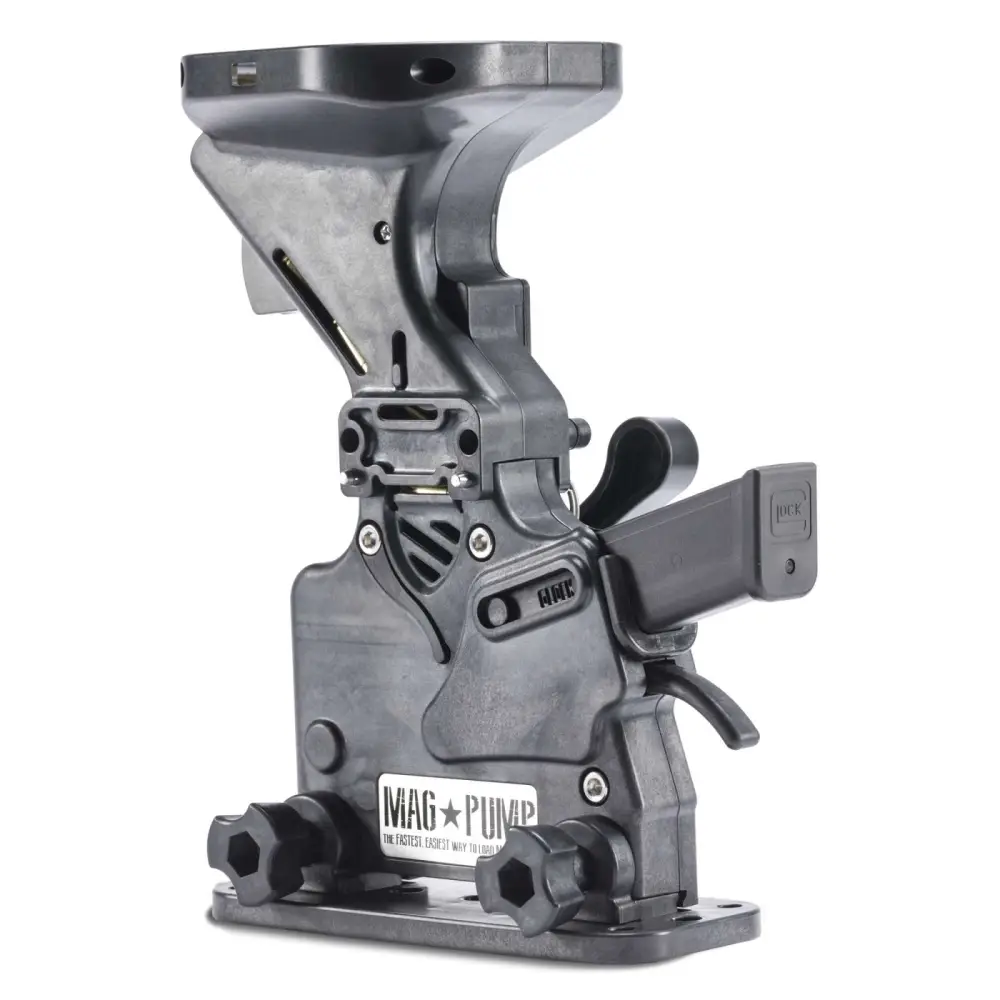 MagPump's magazine loader is the fastest, easiest way to load your magazines. This hopper-fed, loose ammo loader is designed to eliminate hand fatigue and reduces loading time by more than 50 percent. The pump-action lever self-sorts ammunition in either direction, and loads up to 30 rounds in less than 30 seconds. The MagPump loader has built-in safeties to prevent damaging rounds while loading and stops loading when the magazine is full.