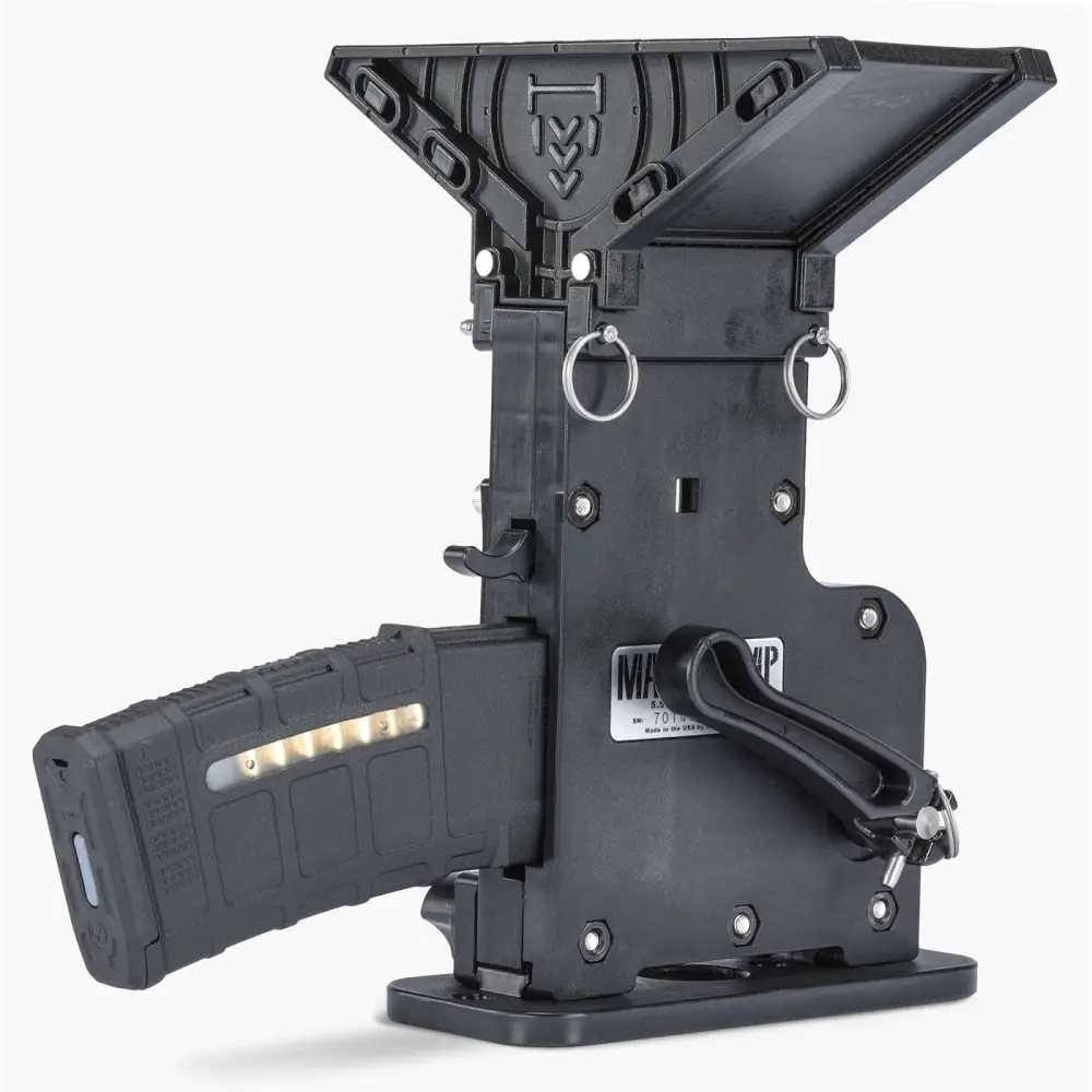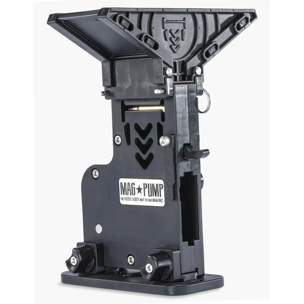 MagPump's magazine loader is the fastest, easiest way to load your magazines. This hopper-fed, loose ammo loader is designed to eliminate hand fatigue and reduces loading time by more than 50 percent. The pump-action lever self-sorts ammunition in either direction, and loads up to 30 rounds in less than 30 seconds.The MagPump loader has built-in safeties to prevent damaging rounds while loading and stops loading when the magazine is full. This rifle model mounts to any Weaver or Picatinny rail and has a 90-round capacity hopper. This AR-15 standard model is constructed of lightweight, durable polymer and is compatible with all Mil-Spec AR-15 magazines, and .233 Rem, 5.56 NATO and .300 Blackout rounds.