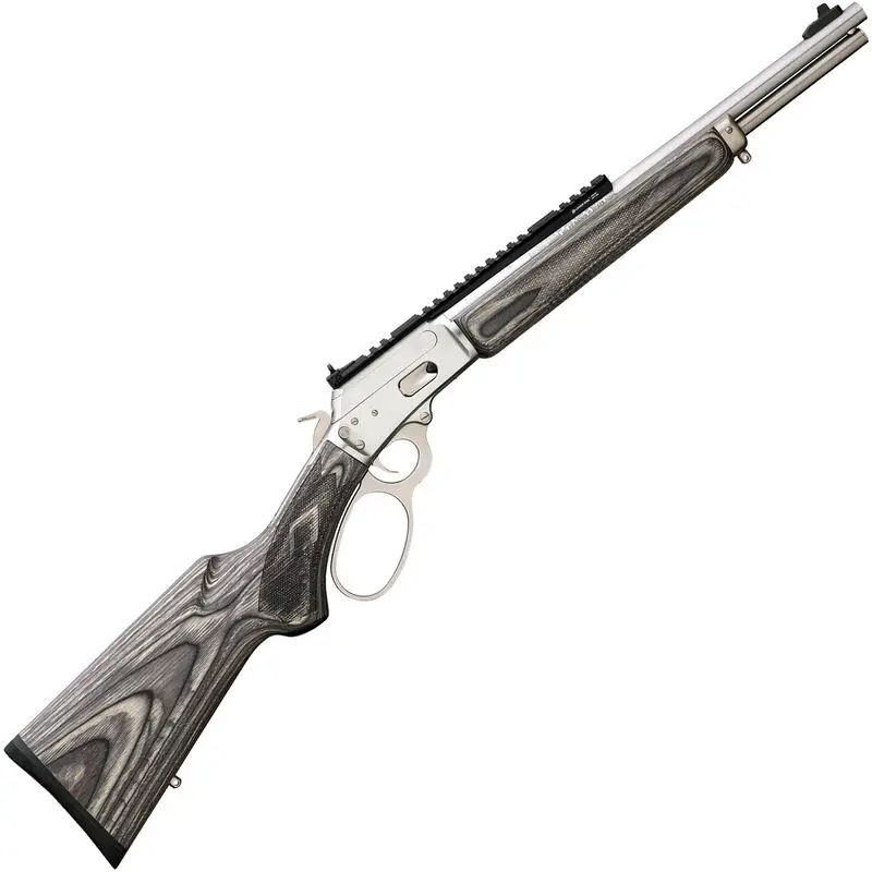 This 1894CSBL model features a black/gray laminate stock, a big loop lever, 16.5" stainless steel barrel, and a XS LeverRail with ghost ring sight.