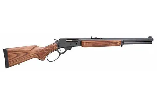 Lightweight and hard-hitting, Marlin's 1895 lever-action carbine is the rifle of choice for many professional hunting guides. The solid-top receiver is tapped for a scope mount with an offset hammer spur (right or left hand) for scope use. It has an adjustable, semi-buckhorn, folding rear sight and a ramp front sight with brass bead and wide-scan hood.