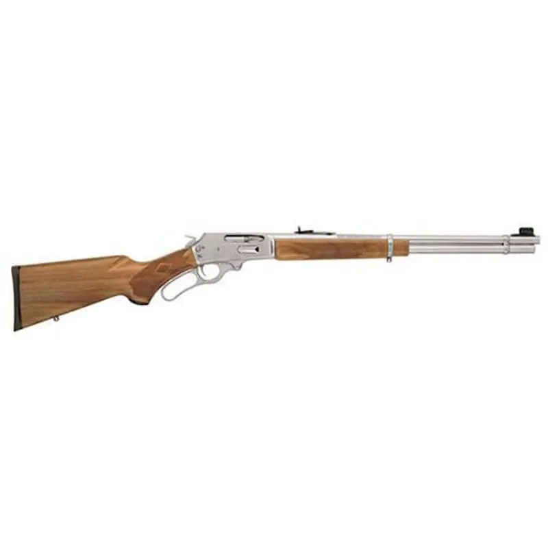 The Model 336 embodies Marlin's dedication to dependability, pinpoint accuracy and good looks. This rifle have has an American black walnut stock, 6-shot capacity, adjustable rear and bead front sights, and the receiver is tapped for a scope mount. A barrel with micro-groove rifling makes it exceptionally handy in the brush and deadly accurate.