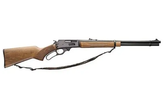 This 336 rifle has a laminated dark hardwood stock, a 6-shot capacity, adjustable rear and bead front sights. Its receiver is tapped for a scope mount, and it features a steel trigger and a blued steel barrel band.