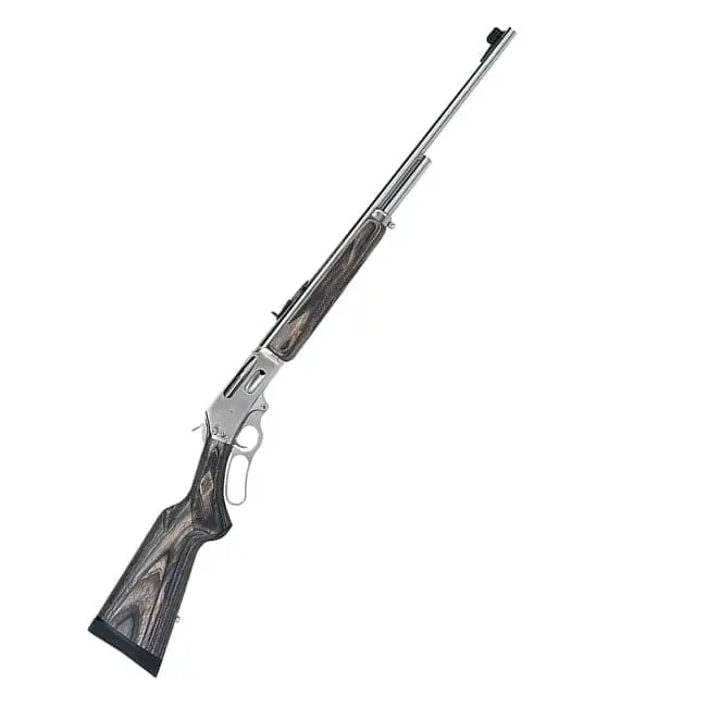 The Model 336 embodies Marlin's dedication to dependability, pinpoint accuracy and good looks. This rifle have has a laminated hardwood stock, 5-shot capacity, adjustable rear and bead front sights, and the receiver is tapped for a scope mount. A barrel with micro-groove rifling makes it exceptionally handy in the brush and deadly accurate.