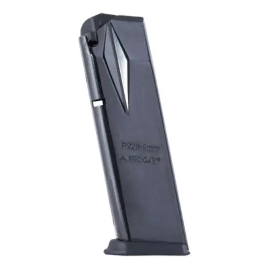 Mec-Gar 9mm, 15rd magazine the Sig P228 and older P229 pistols with flat-sided narrow magazine. *Not for use in P229 E2 pistols with wider tapered P229-1 magazine.