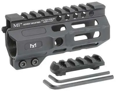 Made in USA, the Combat M-Lok Handguard is constructed of 6061 aluminum with a continuous 1913 Picatinny top rail, two integral anti-rotation QD sling sockets, and seven sides of M-Lok. It also utilizes a 4140 heat treated barrel nut, 4140 heat treated torque plate, and is fully dehorned and deburred. The handguard includes a barrel nut, wrench, and 5-Slot polymer M-Lok rail.