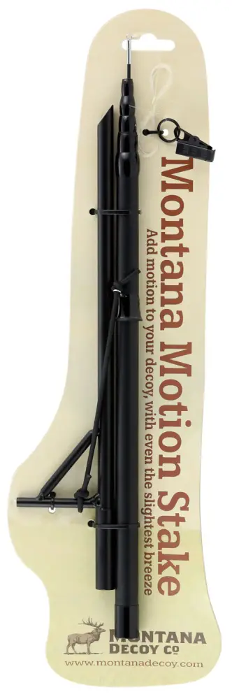 The Motion Stake is a telescoping pole that sits above the decoy, allowing it to hang and move in the breeze. No batteries or electronic accessories needed. Easy to carry and use, it folds down for easy transport and works in a slight to moderate wind with any turkey decoy.