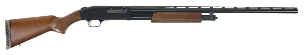 The sleek profile of a 535 barrel coupled with a shortened magazine tube provides comfortable balance and swing. This gun is all-terrain, all-purpose with a 3.5" chamber for the widest range of useage. The 28" vent-ribbed barrel has a white front bead and comes with the Accu-Choke set of M, F and IC choke tubes. The 535 barrels are not interchangeable with other Mossberg shotguns.