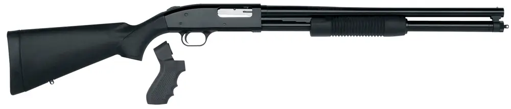 The 500 Tactical from Mossberg is a 12 gauge, tactical platform, pump action shotgun. This firearm features a black synthetic stock with an interchangeable pistol grip, along with a blued finish on the metal, a 20" barrel, and a bead front sight. It is design specifically with military and law enforcement in mind, making this a great choice for your go to home defense weapon.