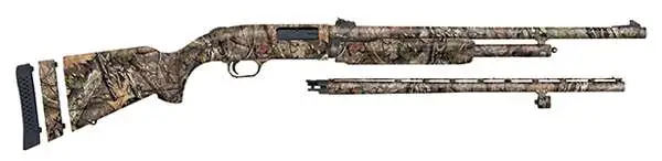 The Mossberg 500 Youth Field/Deer Combo features an all-over Mossy Oak Obsession camo finish. This 20 gauge combo comes with two barrels, one 22" vent rib with dual beads and Accu-set choke, and one 24" ported with adjustable rifle sights and a fully rifled bore equipped with a 3 inch chamber.
