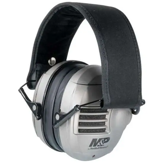 Battenfeld's M&P Alpha Electronic Earmuff features a folding compact design and amplifies low level sounds. It has an audio input jack that can play your MP3 music, adjustable cushioned ear cups, and includes two (2) AAA batteries.