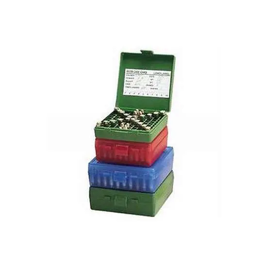 MTM's Case-Gard P-100 series offers the perfect ammo carriers for the handgunner at the range. Each box holds 100 rounds, safeguarding from moisture and dust. It is ideal for storing reloads and is stackable. The textured box has an easy to grip, scuff-resistant surface, a Snap-Lok latch and durable, mechanical hinge. Each P-100 is supplied with a load label for recording custom loads. These boxes are made in the USA in the MTM factory in Dayton, Ohio.