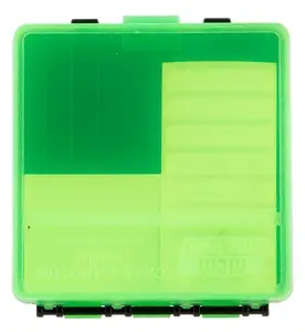 MTM's Case-Gard P-100 series offers the perfect ammo carriers for the handgunner at the range. Each box holds 100 rounds, safeguarding from moisture and dust. It is ideal for storing reloads and is stackable. The textured box has an easy to grip, scuff-resistant surface, a Snap-Lok latch and durable, mechanical hinge. Each P-100 is supplied with a load label for recording custom loads. This model has a clear green top, black bottom, and can hold 9mm Luger, 380 ACP, 30 Luger, 32 S&W, 9mm Makarov, 9x19mm, and 9x21mm ammo.