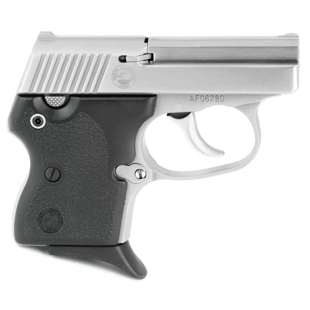 The Guardian 32 with ILS fits comfortably in your pocket. It has a capacity of 6+1, is double action and the only pocket pistol built of 17-4 pH stainless steel. The combination of small size, high quality, and great stopping power have made it North American Arms' most popular Guardian. The ILS (Integral Locking System) safety system allows the hammer to be locked into place so the gun can't be fired until unlocked by the key, releasing the hammer and enabling the firing pin. When unlocked, the button is flush with the black plastic grip with the hole in it (required for the key and ILS button). The 32 Guardian ILS offers the ultimate in portability and safety.