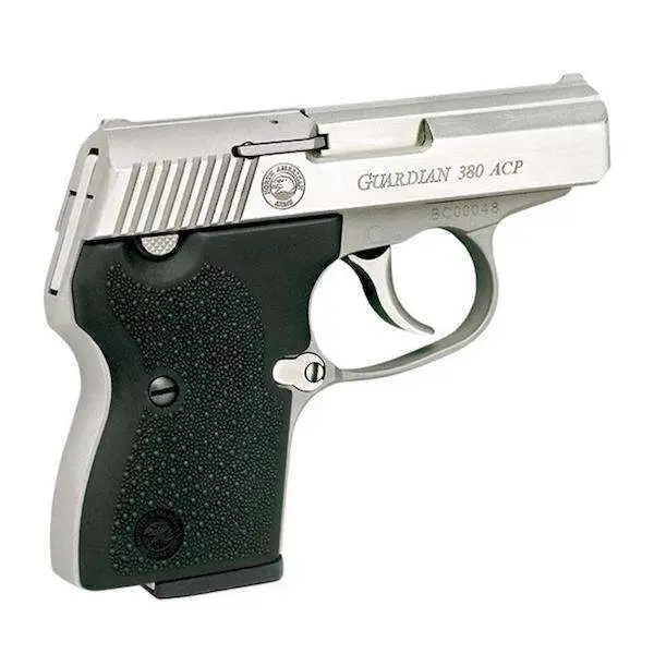 The Guardian 380 is built on the design of NAA's popular 32 ACP. The Guardian 380 ILS is similarly a 6+1 shot double action only pocket pistol built of 17-4 pH stainless steel. The ILS (Integral Locking System) safety system allows the hammer to be locked into place so the gun can't be fired until it has been unlocked by the key, releasing the hammer and enabling the firing pin. When unlocked, the button is flush with the black plastic grip with the hole in it (required for the key and ILS button). The 380 Guardian ILS offers the ultimate is portability and safety.