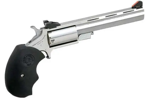 The Mini Master evolved from NAA's Magnum frame series and includes the time tested design characteristics that are incorporated in all NAA mini-revolvers. The result is enhanced stability and accuracy for the more serious shooter. The NAA Mini-Master is outfitted with a 4" heavy vent barrel, bull cylinder and Marble Arms adjustable sight. *Note- This model is CA Compliant.