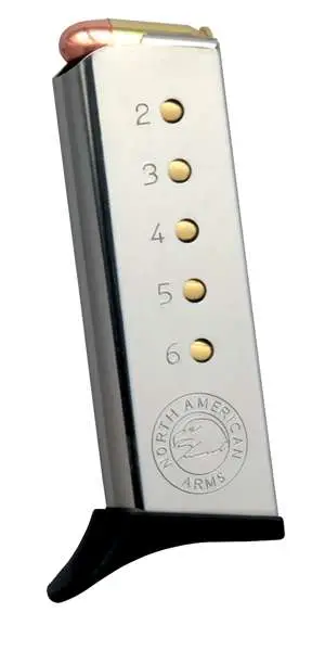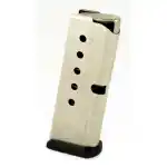 These 6-round magazines are available in stainless steel to fit either 25 NAA/32 ACP or 380 ACP models. Magazine is available with a standard base or with a finger extension.