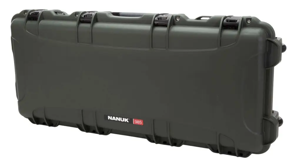 Built to survive the outdoors, the NANUK 985 is favored by sportsmen, hunters, law enforcement and the military This 36 takedown sized case features two spring loaded handles and rolls around smoothly with its polyurethane wheels.With an IP67 Waterproof rating, the NANUK 985 keeps your equipment safe and protected with its four patented PowerClaw latches. For extra security, two latches feature an integrated TSA accepted key lock to keep your equipment securely locked during transit but accessible for inspection by the TSA when required. This indestructible MIL-Spec case is equipped with a lid stay feature to keep the case safely open when in use and the reinforced stainless-steel eyelets can be used to secure additional padlocks.