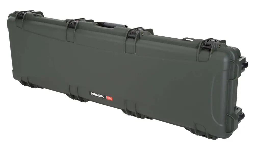 Built for the outdoors, the extra long 995 is favored by law enforcement, the military and avid sportsmen alike. The firearm case features 2 spring loaded handles and gets around smoothly with its polyurethane wheels. Waterproof, the 995 keeps your equipment secure and is equipped with a total of 4 patented PowerClaw latches including 2 TSA keyed locks. For extra security the TSA powerclaw latches keep your equipment safely locked during transit but accessible for inspection by the TSA when required.