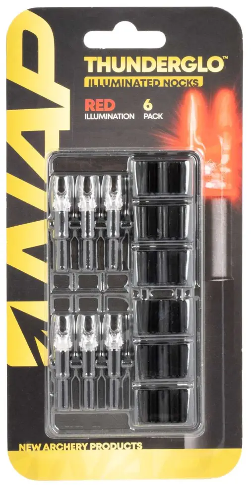 NAP Thunderglo Lighted Nocks have ultra bright LED illumination and feature an easy on/off feature. Thunderglo Lighted Nocks are crafted of a polycarbonate blend with an aluminum shaft making them extremely durable for long lasting use and life expectancy. Its universal collars will allow Thunderglo Nocks to fit most any arrow (G/X/H/S).
