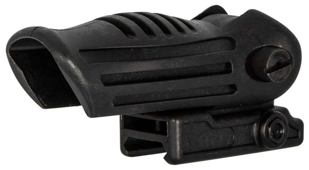 The Folding Vertical Grip with a push of a button you can change the angle of the grip to 4 different positions. Mounts onto Weaver and Picatinny type rails, ergonomic design for comfortable and secure grip and polymer construction for a light weight addition to your rifle, but with solid strength and reliability. *Vertical Grip Not designed for Pump Shotguns.