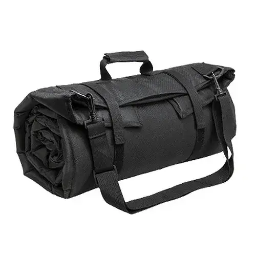 NcStar's Shooting Mat can be used for multiple purposes. Made with a water and chemical resistant PVC material, the adjustable shoulder strap serves double duty to help secure your firearm's bipod while the slip resistant panels helps keep your elbows and knees from losing traction. The .30" of padding makes shooting from the prone position on the ground more comfortable. Unrolled it measures 69"L x 35" and rolls up into a compact size of 19.5"W x 8.5"H with two hook and loop straps to secure it.