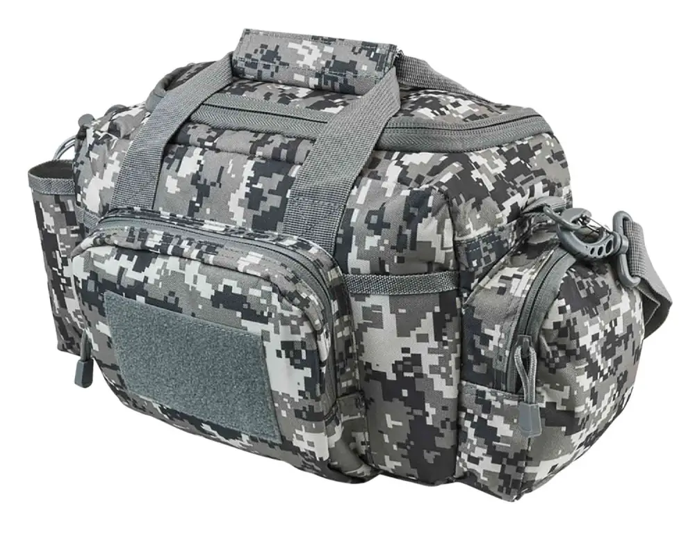 This bag is a smaller range bag that is compact while being able to hold a lot of gear. The range bag will easily carry a couple pistols, holster, several magazines & pouches, ammo, eye & hearing protection, and other essential range gear. This bag has a large top opening zippered lid for easy access to your gear with heavy duty zippers. It also comes with metal zippers with metal loops for attaching a small pad lock (not included) to secure your gear and for those jurisdictions that require a locked container for your firearm when being transported to a range.