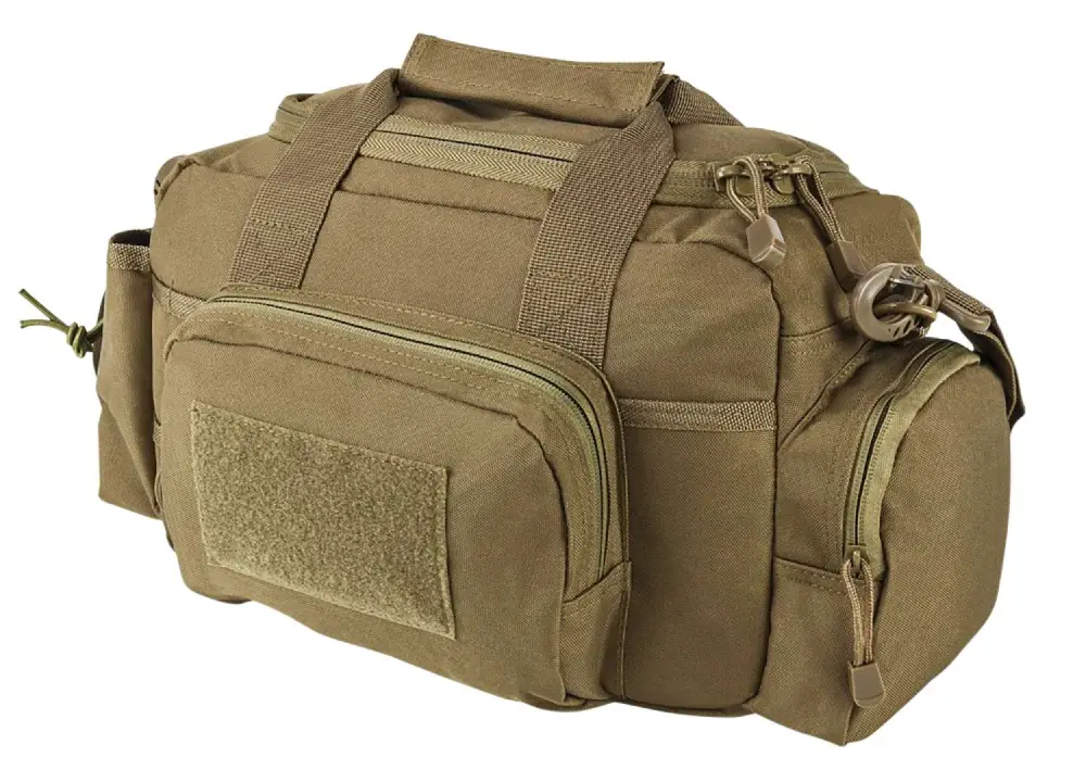 This bag is a smaller range bag that is compact while being able to hold a lot of gear. The range bag will easily carry a couple pistols, holster, several magazines & pouches, ammo, eye & hearing protection, and other essential range gear. This bag has a large top opening zippered lid for easy access to your gear with heavy duty zippers. It also comes with metal zippers with metal loops for attaching a small pad lock (not included) to secure your gear and for those jurisdictions that require a locked container for your firearm when being transported to a range.