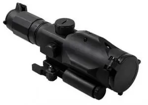 NcStar's SRT Gen3 Rubber Armored Scope features a fully integrated 532nm, max output green laser on top of the scope body. The whole ocular body functions as a large Magnification ring. There is also an adjustable reticle focus ring at the end of the ocular lens. Each lens is fully multi-coated for a bright crystal clear image quality and includes integrated flip-up lens covers. Its electronic control panel turns on/off the illuminated reticle, adjust the brightness level, changes the reticle color from blue or red, and turns the laser on/off. The Gen3 Integrated Auto Locking Quick Release Mount, fits Weaver/ Picatinny/ MIL-STD 1913 type rails and features a redesigned and more compact lever. Included are 2 AA batteries.