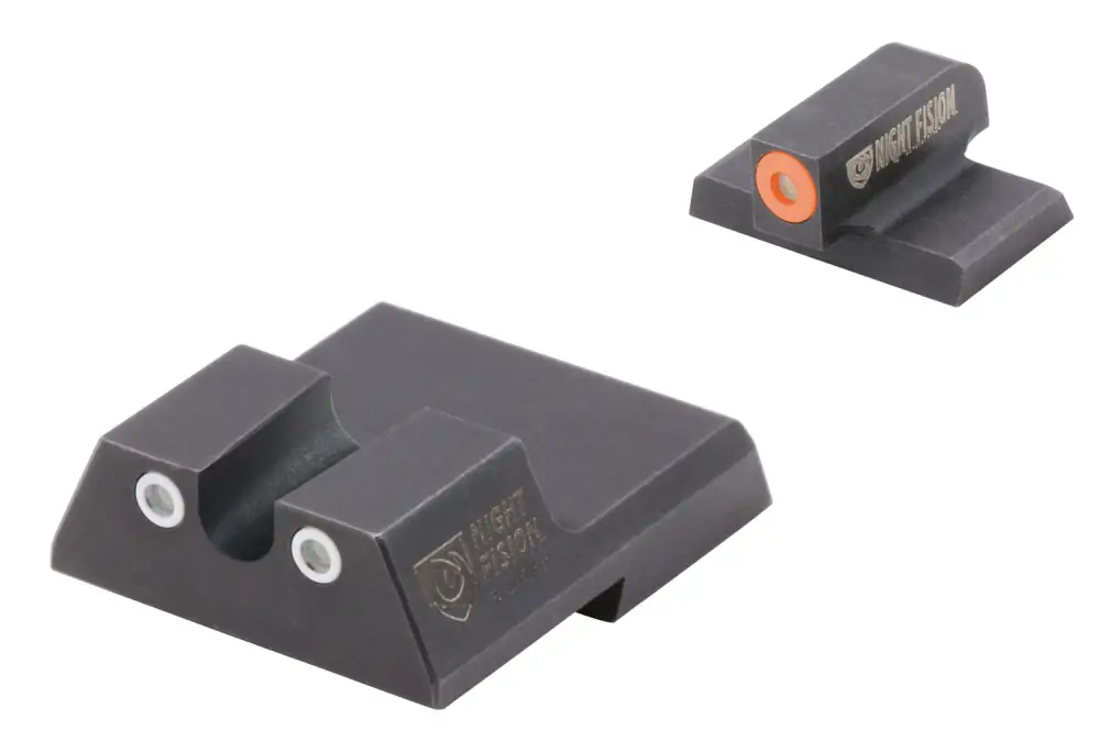Night Fision Night Sight Set Square Front/U-Notch Rear HK VP9/VP40/P30/P30SK/P30L/45/45 Tactical Green Tritium w/Orange Outline Front Green w/White Outline Rear Black