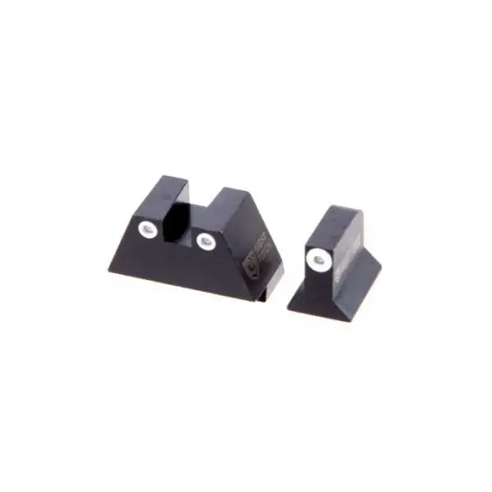 This night sight set is a square front and rear green tritium with a white outline, and fits Glock models 17/17L/19/22/24/24/25/26/27/28/31/32/33/34/35/36/38/39 at suppressor height.