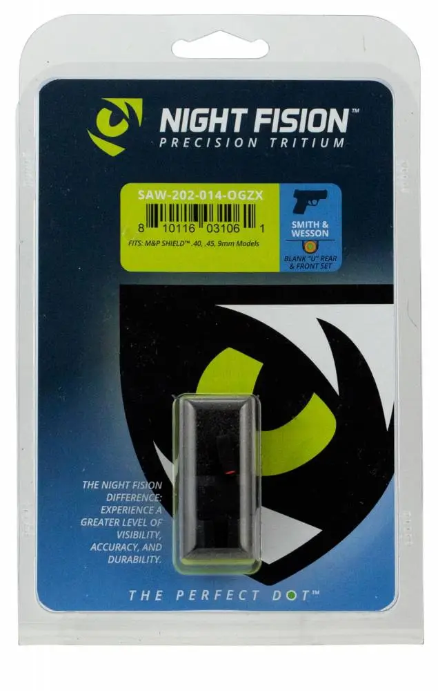 Night Fision SAW202014OGZ Night Sight Set Square Front/U-Notch Rear S&W M&P Shield Green Tritium w/Orange Outline Black