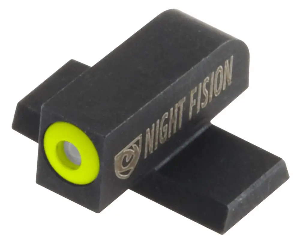 Night Fision utilizes an injection molded process and military-grade polymer with durable polymer tritium outlines to give you flexibility and unrivaled daytime visibility. With the exception of the tritium vials, imported from Switzerland, Night Fision products are crafted end-to-end right here in the USA. This Perfect Dot night sight set is a square front green tritium with a yellow outline and a green tritium with white outline u-notch rear. It is compatible with Sig Sauer 40/45 caliber P-Series models.