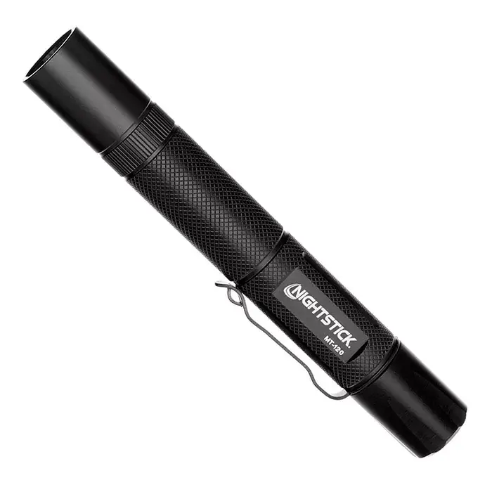 This non-rechargeable Mini-TAC light use a CREE LED and has a deep parabolic reflector creating a tight, long throw beam for distance illumination. It is constructed from aircraft-grade 6061-T6 aluminum with a Type II hard anodized finish and is water resistant. The tail switch provides momentary or constant-on functionality. It comes with a removable pocket clip and a removable wrist lanyard. Included are two AA batteries.