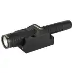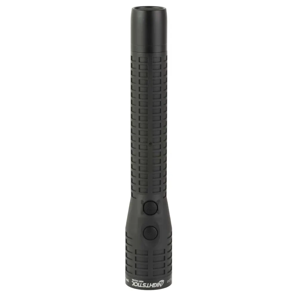 This duty/personal-size rechargeable polymer multi-function Xtreme Lumens Dual-Light Flashlight uses a CREE LED rated at 650 lumens that works in conjunction with a high-efficiency deep parabolic reflector to create a usable beam rated at 275 meters. A 600 lumens unfocused floodlight is integrated in to the housing which is perfect for close-up illumination. Additionally both the flashlight (any brightness mode) and the floodlight can be turned on at the same time for maximum safety and versatility. The flashlight body and tail switches provide momentary or constant-on functionality, a set of user-selectable high, medium or low-brightness settings as well as a disorienting strobe. Both flashlight switches operate in tandem with each other. The second body switch operates the floodlight. The housing is made from glass-filled nylon polymer and has an aircraft-grade 6061-T6 aluminum tail-cap and bezel both with a Type III hard anodized finish. Power comes from a rechargeable Lithium-ion battery.
