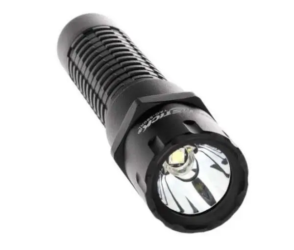 This compact rechargeable multi-function polymer Xtreme Lumens tactical flashlight uses a CREE LED rated at 800 lumens that works in conjunction with a high-efficiency deep parabolic reflector to create a usable beam rated at 205 meters. The tail-cap switch provides momentary or constant-on functionality, a set of user-selectable high, medium or low-brightness settings as well as a disorienting strobe. Its housing is made from glass-filled nylon polymer. Power comes from a rechargeable Lithium-ion battery and includes the ability to run from a pair of CR-123 batteries (batteries not included) thanks to the CR-123 Battery Carrier (included).