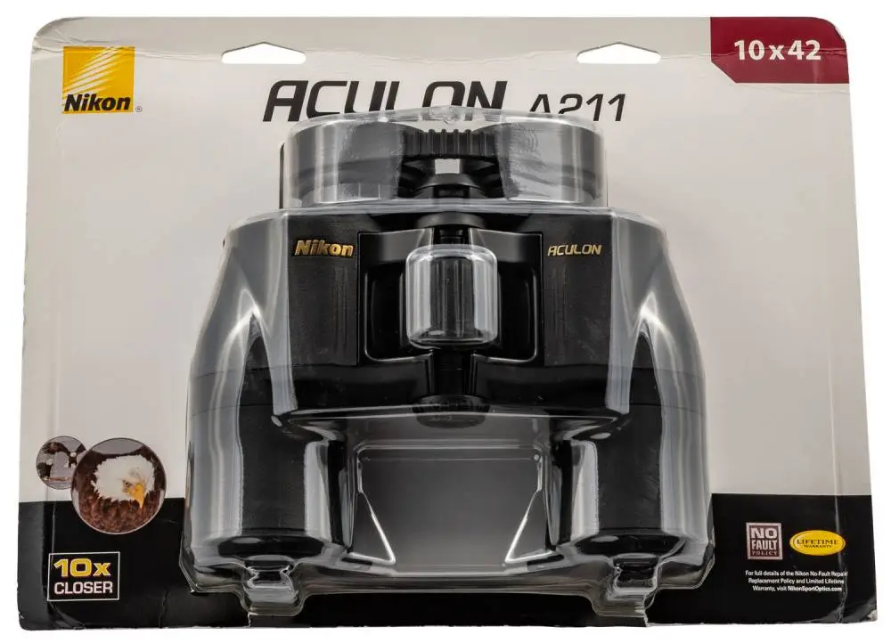 The ACULON A211 10x42 binoculars feature 10-power multicoated lenses and 42mm objectives fabricated with Nikon's exclusive lead and arsenic-free Eco-Glass. The BaK4 Porro prism systems within all ACULON A211 binoculars deliver a high-quality image under a multitude of lighting conditions, making these binoculars effective from dawn till dusk. All together the ACULON A211 10x42 binoculars are a compact, high-quality, and cost-effective choice.