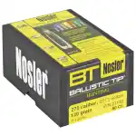 Nosler engineered the Ballistic Tip Hunting bullet to be very predictable and extremely forgiving. The polymer tip resists deformation in the magazine, initiates expansion upon impact and is color-coded by caliber. The fully tapered jacket and special lead alloy core allows controlled expansion and optimum weight retention at all practical velocity levels. A heavy jacket base prevents bullet deformation during firing and acts as a platform for large diameter mushroom. Nosler's unique solid base boat-tail design, combined with the polycarbonate tip, dramatically increases long-range ballistic efficiency.