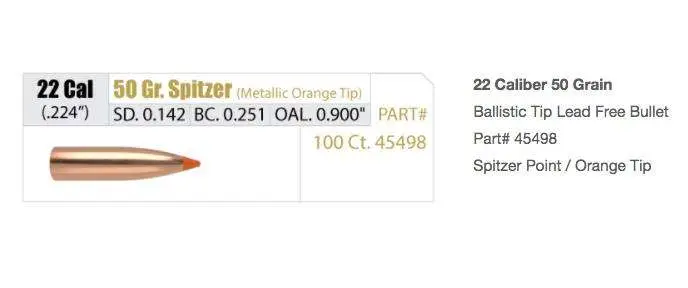 The Ballistic Tip Lead-Free is everything that varmint and predator hunters expect from a Ballistic Tip, in a lead-free design. The flat-based, lead-less bullet features Nosler's exclusive Fragmenting Copper Core Technology (patent pending) which exhibits immediate and rapid expansion, initiated by its metallic-colored polymer tip, at practical varmint shooting velocities of 1600 fps and above. The BTLF can safely be used in all lead-free zones or shooting ranges that require non-magnetic bullets. Users can be confident of the same performance and quality that the Ballistic Tip has made famous for more than 25 years.