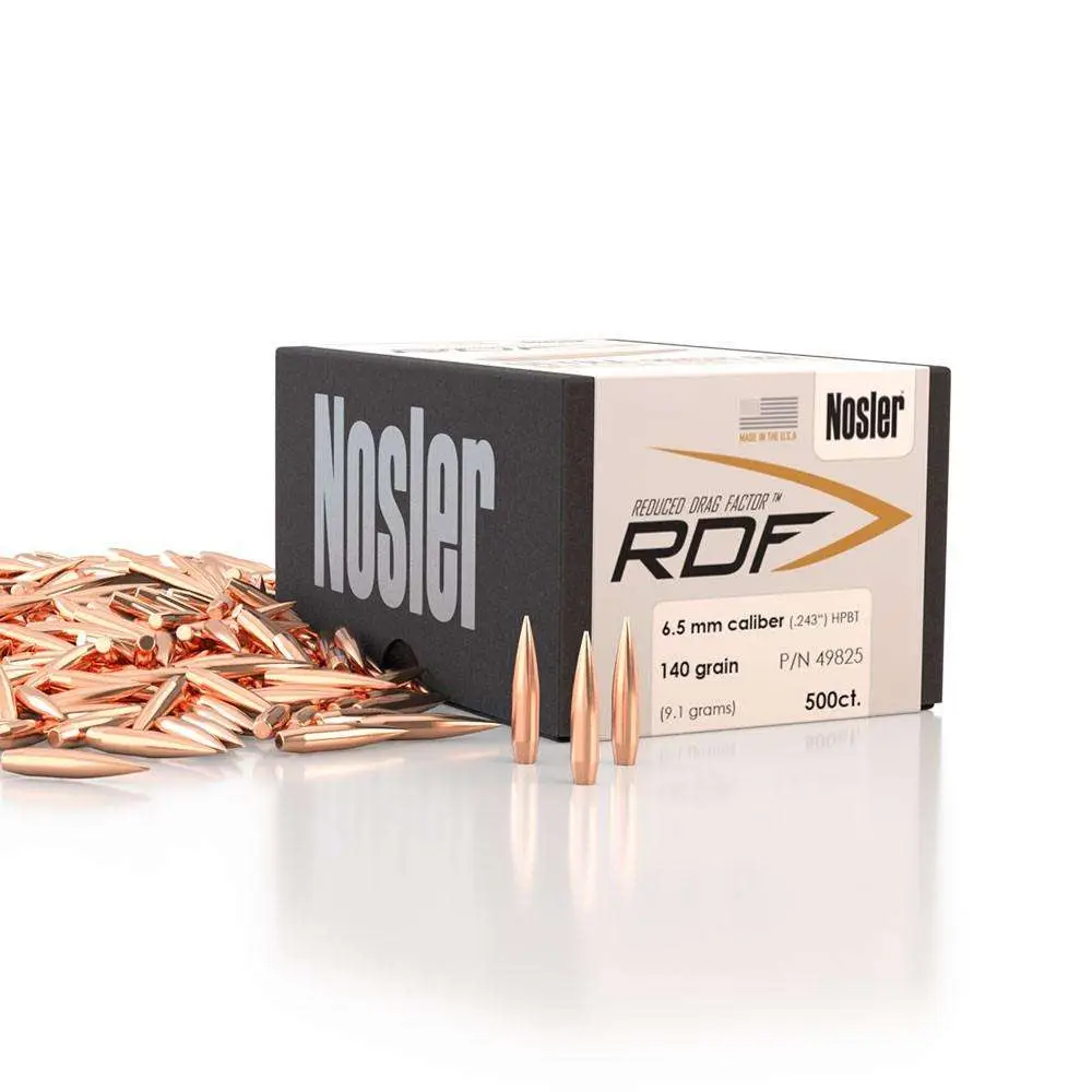 For those wanting to squeeze the most performance from their competition rifle, Nosler's RDF (Reduced Drag Factor) match bullet line is the ideal choice. The RDF line was designed from the ground up to provide exceptionally high BCs, which create the flattest trajectory and least wind drift possible. The keys to the RDF's outstanding performance are Nosler's meticulously optimized compound ogive and long, drag-reducing boattail, which make handloading a snap and create an incredibly sleek form factor. RDF bullets also have the smallest, most consistent meplats of any hollow point match bullet line, so there is no need to point or trim tips.