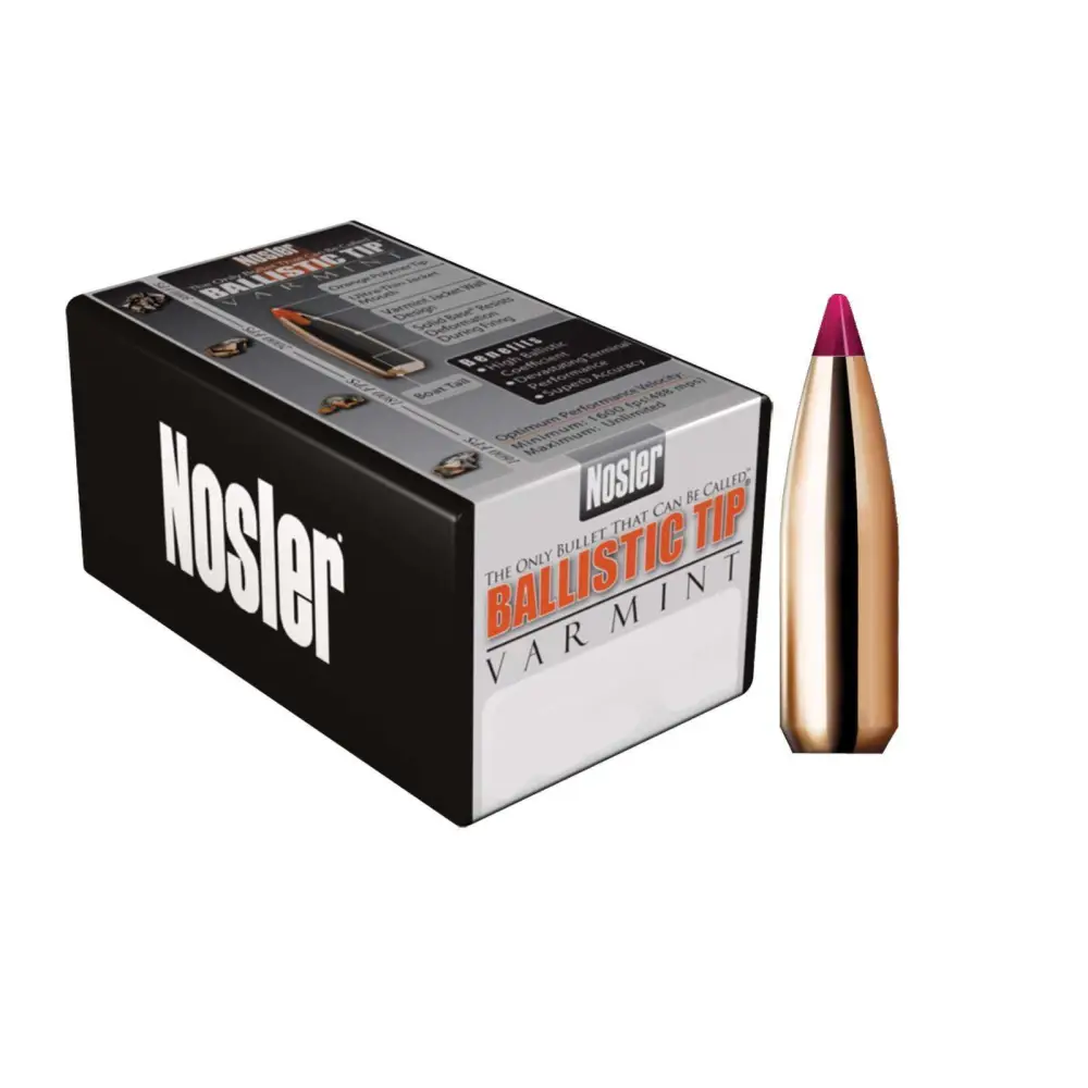 Nosler Ballistic Tip Varmint bullets thrive on ultra-high velocity loads, yet will go the distance with spectacular results all the way down to the lowest practical velocity levels. Fast or slow, near or far, no matter what rifle/cartridge combination you're shooting or what varmint you're shooting at, Nosler Ballistic Tip delivers match-grade accuracy with all the performance characteristics serious varmint hunters are looking for.