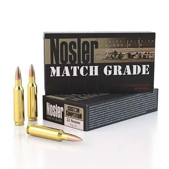 Nosler Match Grade Ammunition consists of Noslers precisely-designed Custom Competition bullet along with Nosler brass. Because of Nosler's unsurpassed quality standards, each piece of brass is checked for correct length, neck-sized, chamfered, trued and flash holes are checked for proper alignment. To further ensure our reputation for quality and consistency, powder charges are meticulously weighed and finished rounds are visually inspected and polished. Manufactured to Nosler's strict quality standards, Match Grade ammunition uses Nosler brass and Nosler bullets to attain optimum performance.