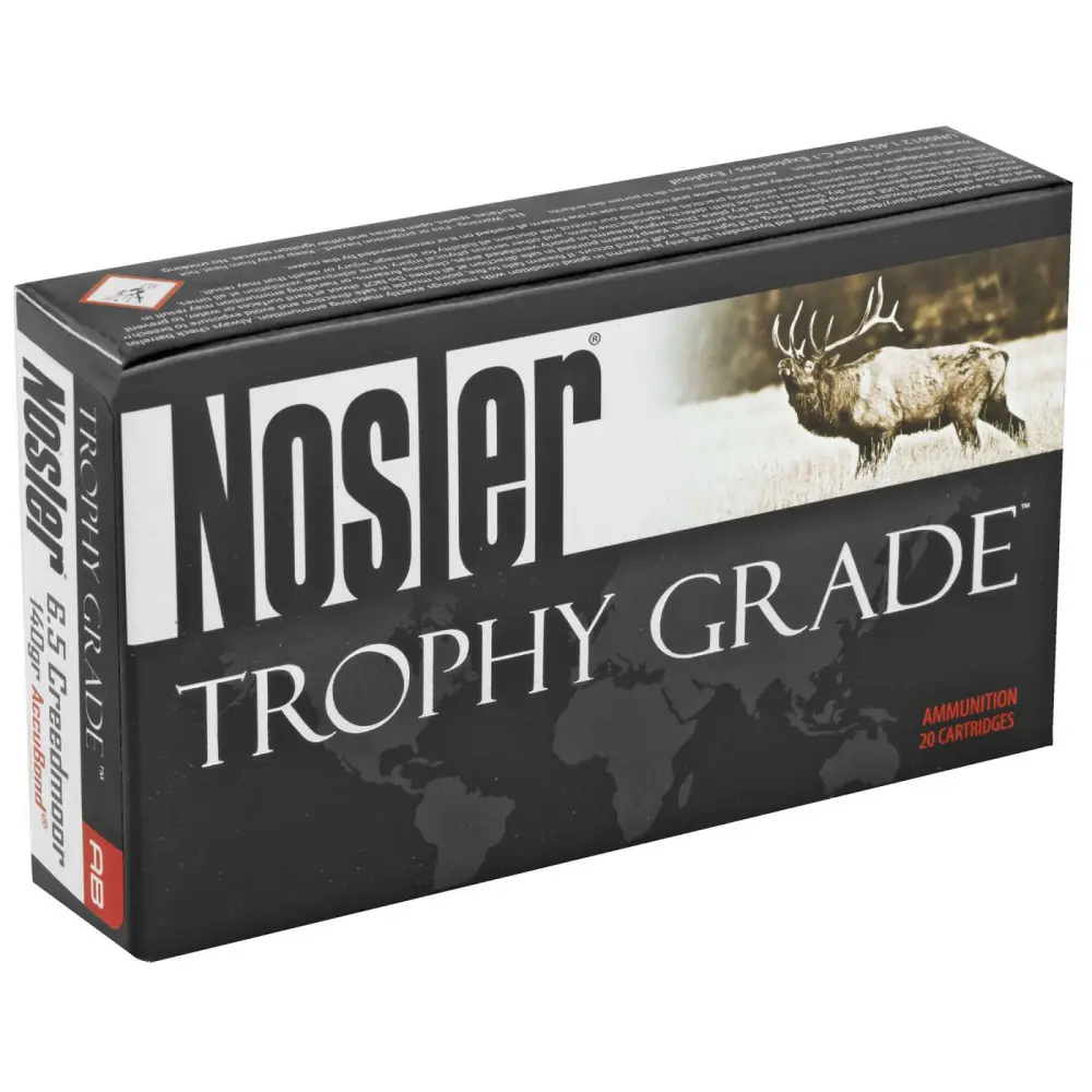 Manufactured to Nosler's strict quality standards, Trophy Grade ammunition uses Nosler Custom brass and Nosler bullets to attain optimum performance, no matter where your hunting trip takes you. Whether you want your ammunition loaded with AccuBond, Partition Ballistic Tip or E-Tip, Nosler Trophy Grade Ammunition will have the right load for the right game.