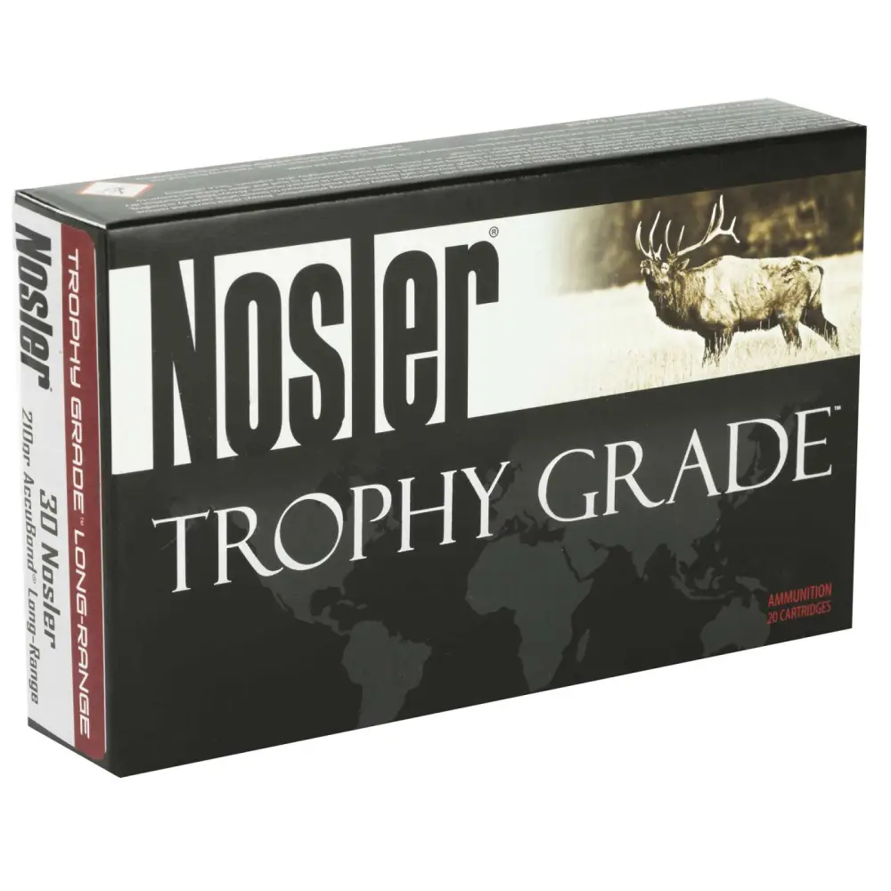 Trophy Grade Long Range ammunition is designed for hunters and shooters looking for high-performance ammunition loaded with an ultra-high bonded-core bullet. Manufactured to Nosler's strict quality standards, this Trophy Grade ammunition uses Nosler brass and Nosler AccuBond Long Range bullets to attain optimum performance.