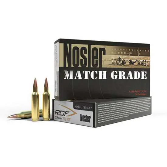 Match Grade-RDF ammunition brings all of the ballistic advantages of the RDF bullet line to loaded ammunition. Designed specifically for long range competition, the RDF bullets feature highest in class BC's and incredibly small meplats for consistent precision and flat trajectory at long range. Loaded in premium Nosler brass, Match Grade-RDF ammunition is carefully loaded with precise, high-performance powder charges for accuracy and consistency that competitors can depend on.