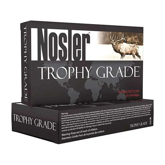 Manufactured to Nosler's strict quality standards, Trophy Grade ammunition uses Nosler Custom brass and Nosler bullets to attain optimum performance, no matter where your hunting trip takes you. Whether you want your ammunition loaded with AccuBond, Partition Ballistic Tip or E-Tip, Nosler Trophy Grade Ammunition will have the right load for the right game.